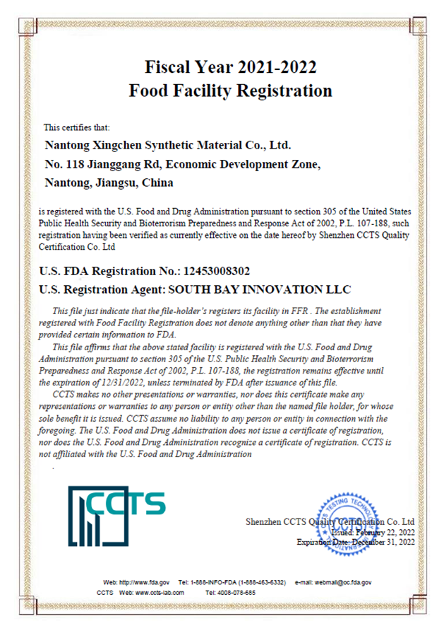 近日,南通星辰聚苯醚產品通過美國FDA食品接觸材料檢測標準US FDA 21CFR 177.2460,獲得美國FDA認證!至此(cǐ),南通星辰聚苯醚可作為食品接觸級材料(liào)進入美國市場,拓寬了南通星辰聚苯醚產品在食品包裝、餐飲器具、醫療器械等領域的應用。