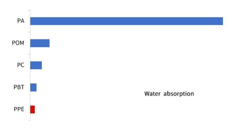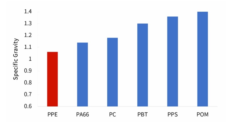 1、比重低(dī),ρ=1.06 g/cm3,最輕的工程(chéng)塑料。