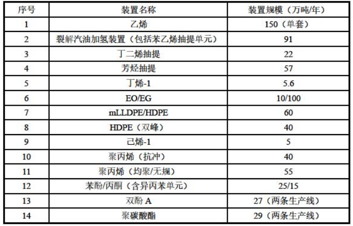 建設規模:乙烯及下遊(yóu)——乙烯生產規模為150 萬噸(dūn)/年,乙烯(xī)下遊規劃建設10/100 萬噸/年環氧乙烷/乙二(èr)醇、40 萬噸/年HDPE、60 萬噸/年mLLDPE/HDPE以及5 萬噸/年已烯-1。