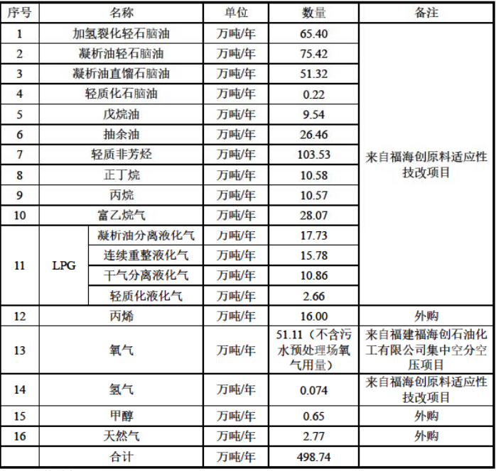 主要原料:本項目以福(fú)海(hǎi)創原料(liào)適應性技改項目提供的石腦油、戊烷油(yóu)、抽餘油、正丁烷、丙烷等為原料(liào),通過蒸汽裂解方(fāng)式生產乙烯,進而延長產品鏈,生產下遊石化產品。