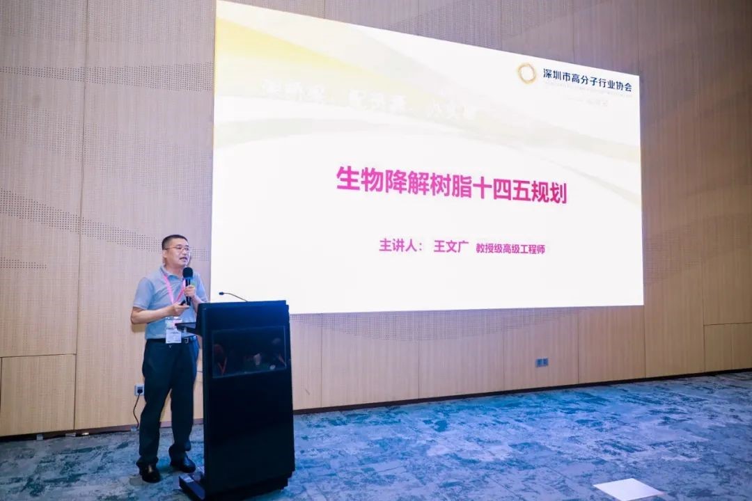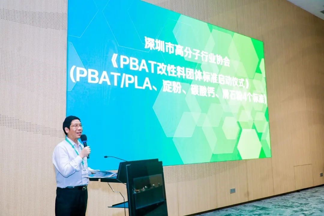 教授代表深圳市(shì)高分子行業協會宣讀《關於征集(jí)PBAT 係列改性料(liào)團體標準及行業標準參(cān)編單位的(de)通知》,呼(hū)籲(yù)大家積極參與PBAT/PLA、澱粉、碳酸鈣、滑石粉 4 個標準的製定,共同推(tuī)進行(háng)業發展。
