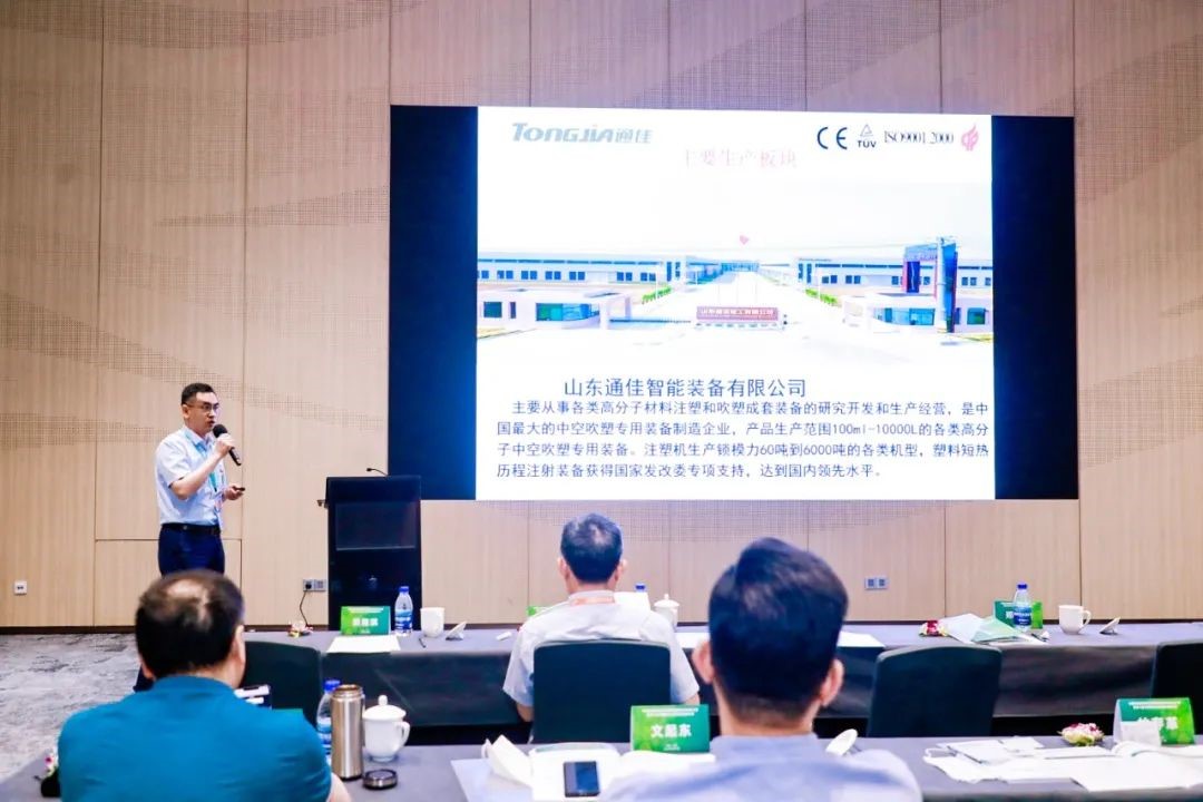 作《生物降解材料(liào)輕量化工藝技術裝備(bèi)研究進展》報告,李勇總經理就向大家分(fèn)享了山東通佳機械有限(xiàn)公司推出的一係列生物基(jī)環境友好高分子材料專用裝備,重點介紹(shào)了PLA超臨界CO2發泡片材生產技術與裝備,PLA發泡(pào)質量控製的要點。
