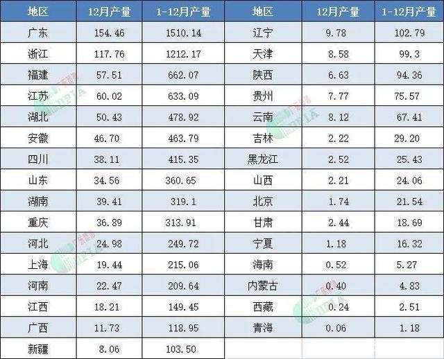 圖2 2021年1-12月(yuè)中國塑料製(zhì)品產量分地(dì)區(qū)統計表(biǎo)(單位:萬噸)