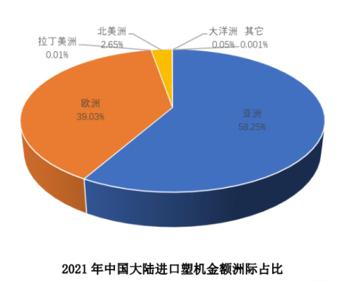 按進口來源看,2021年中國大陸從亞洲進口12個稅(shuì)號(hào)塑機金額12.59億美元,同比(bǐ)增長27.10%;從歐洲進口額近8.44億美元,同比增長13.00%;從北美洲進口額為5734萬美元,同比增長(zhǎng)11.12%。