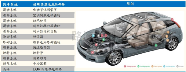 在汽車領域,耐熱塑料正(zhèng)在取代傳統的工程塑料和一些金屬。汽車領域的這(zhè)一替代(dài)需求(qiú)主要由以下幾點原(yuán)因推動:1)更高(gāo)的安全性和(hé)舒適性要(yào)求;2)更長(zhǎng)的使(shǐ)用壽命要求;3)發動機零件溫度(dù)升高(gāo);4)汽車電動化趨勢下電路布局更(gèng)加複(fù)雜。高溫尼龍具有良好的機械、抗蠕變和耐高溫疲勞(láo)等性能,是一種理想的替代材料,適用於發動機、傳動係統、空(kōng)氣係統和進(jìn)氣裝臵等部位,例如使用高溫尼龍製成的(de)鏈條拉緊器其磨損(sǔn)程度遠小於 PA66。隨著汽車電(diàn)氣化的快速推(tuī)進,高溫尼龍在汽車(chē)領域(yù)的需求有望迎來高速增長。
