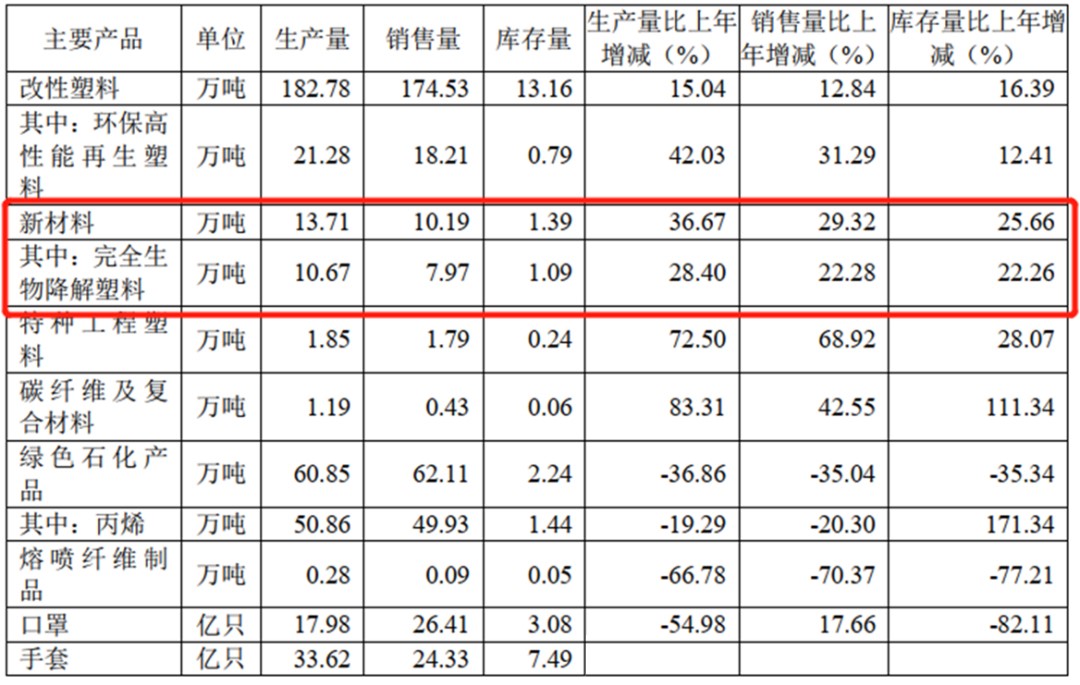 金發科技(jì)2021年年報,生物降(jiàng)解業務重點信息,