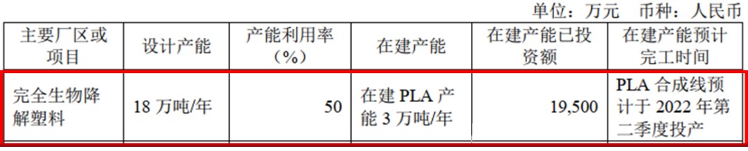 完全生(shēng)物降解塑料,已建成產能18萬噸,產能(néng)利用率50%;