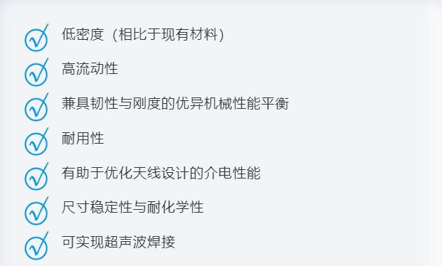 Zytel® FE150065 BK010為23%填料增(zēng)強低密度聚(jù)酰胺610樹脂,可用做於絕大多數的可穿(chuān)戴設備組件(jiàn)。Zytel® RS32G10DO BK236為玻纖增(zēng)強低密度聚酰胺610樹脂,是要求高機械強度組件的最佳選擇。這兩款材料均比現有結構型(xíng)材料至少減重(chóng)30%,有助(zhù)於打(dǎ)造更便(biàn)於日常攜帶、觸感更舒適的可穿(chuān)戴設備(bèi)。