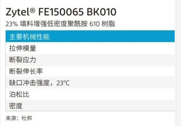 Zytel® FE150065 BK010和Zytel® RS32G10DO BK236兩款新型材料(liào)30%的成分來自生物原料,可幫助製造商實現可持(chí)續發展目標。此外,這兩款產品還(hái)能在不犧牲性能的(de)前提下降低化石燃料消耗。