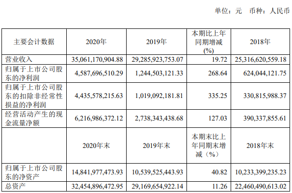 近日,金發科技發布了(le)2020年年報(點(diǎn)擊預覽)。報告期內,實現(xiàn)營業收(shōu)入 350.61 億元,同比增長(zhǎng) 19.72%,實現歸屬於上(shàng)市公司股東的淨利潤 45.88 億(yì)元,同比增長 268.64%,歸屬於上市公司股東(dōng)的扣除非經常性(xìng)損益的淨利潤 44.36 億 元,同比增長 335.25%。