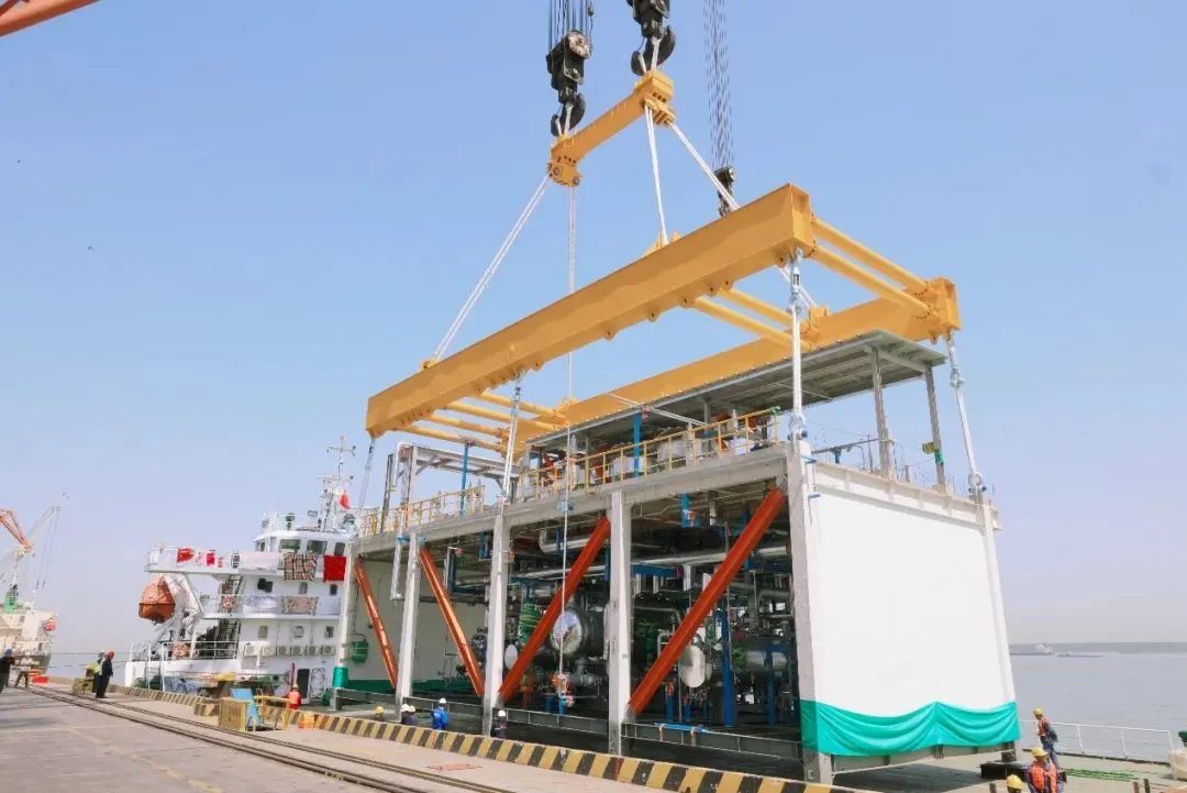 1.新增的聚合物裝置設計有63個模塊,單體模塊最重近400噸,預先建造後,以水陸聯運方(fāng)式運抵化工(gōng)區,在項目(mù)現場使用(yòng)2000噸履(lǚ)帶吊以(yǐ)及液壓平整裝置對模塊進行精準就位。
