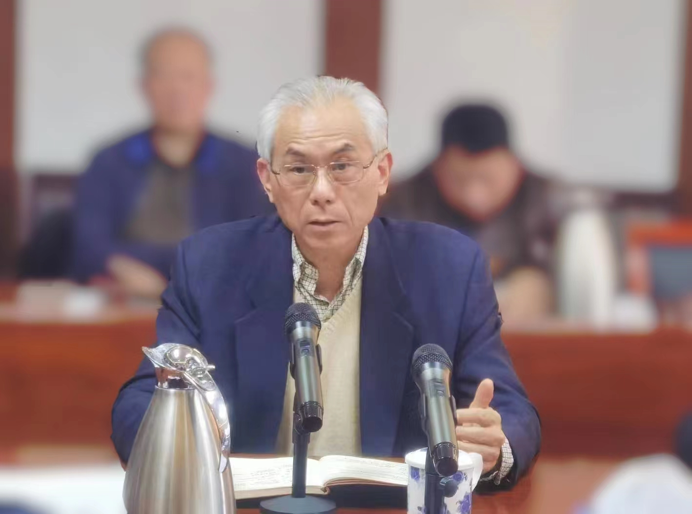 圖為(wéi)石化聯(lián)合會黨委書記李雲鵬同誌談學(xué)習體會