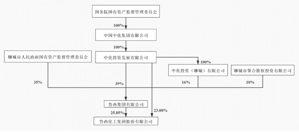 根據近日魯西化工發布的《魯西化工集團股份有限公司收購報告書》(下稱“《收購報(bào)告書》”),中國(guó)中化通過國有股權(quán)無償劃轉方式取得中化集團和中國化工集團100%的股權, 從而間接收購中化集團下屬控股公司魯西集團和中化投資合計持有的魯西化工9.31億股,約占公司總股本(běn)的48.93% 。公司(sī)的控股股東(dōng)仍為中化投資,實際控製人仍為國務院國資委。本次收購完成後,公司的股權控製(zhì)關係如下(xià)圖所示:
