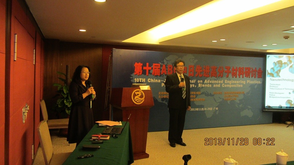 由中国合(hé)成树脂协会与日本高(gāo)分子学会纳米技术研究会主办,日本高分子学会、金发科技股份有限公司、大连理工大学(xué)协办,并由中华人民共和国科学技术部作为支(zhī)持单位(wèi)的第十届(ABC)中日先进高分子材料研讨会于2013年11月27日至30日在广州召开。