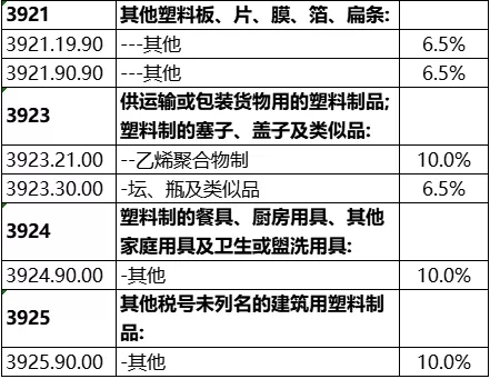 協定生效部分降(jiàng)稅以及例外產品的塑料及其製品清單