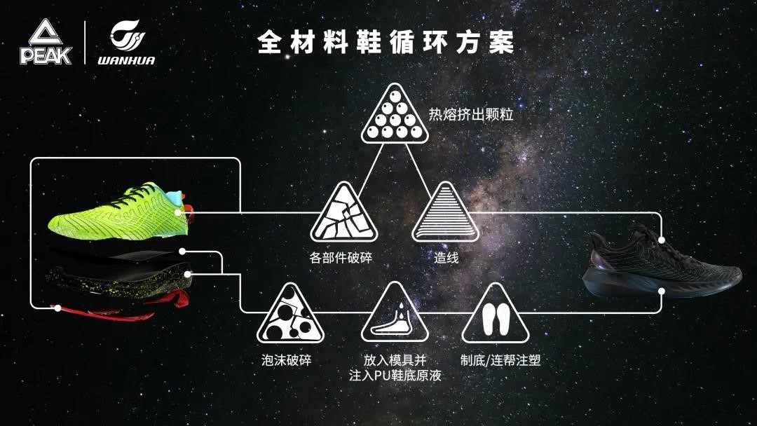 12月5日,匹克體育年度盛典——未來運動科技大會在北京隆重舉辦。活動中,萬華化學攜手匹克體育共同發布全材料鞋底循環方案。