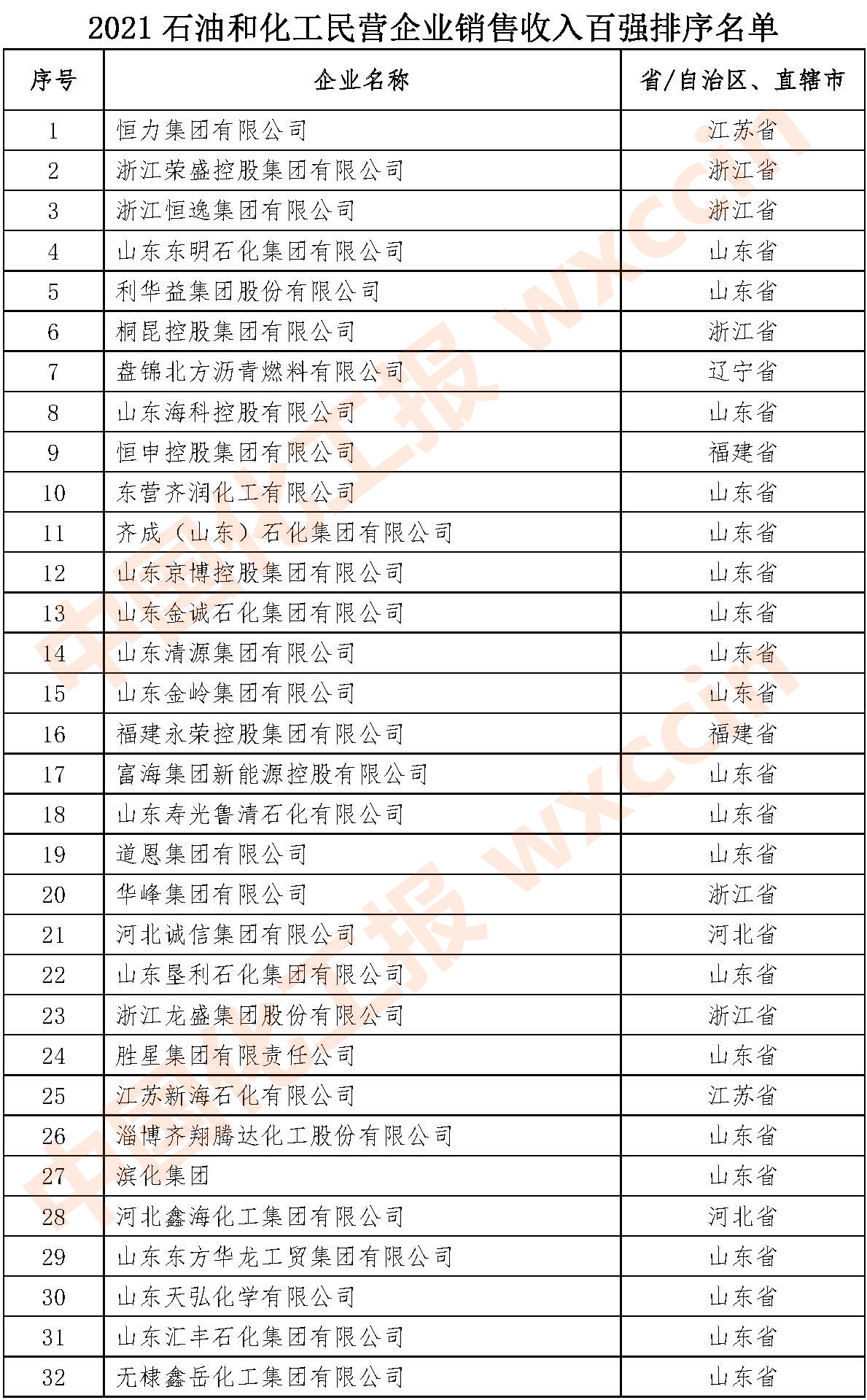 2021石油和化工民營企業百(bǎi)強出(chū)爐(全名單)
