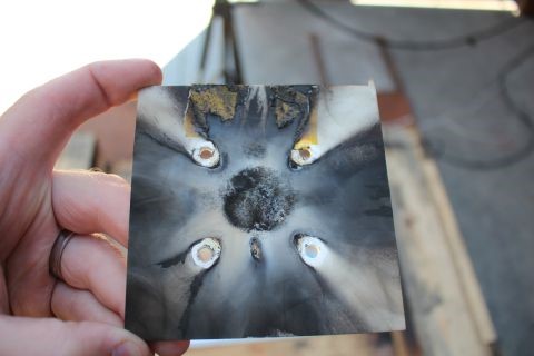 帝人汽車公司的膨脹材(cái)料經過熱失控(kòng)測試後呈現的斑塊