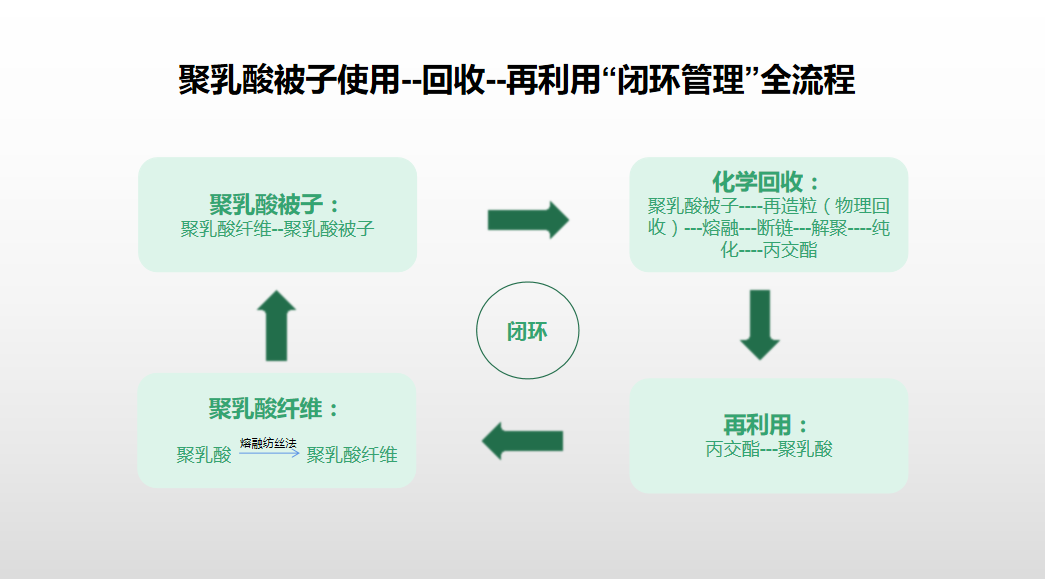 其次(cì),對被子實現化學回收(shōu)再利用,也是行業內(nèi)的首創。通過回收廢棄被子(zǐ),可以實現對(duì)“低價值資(zī)源”的“高價值轉化”,創造更(gèng)高的經濟效益及環境效益,形成綠色高效的產業鏈發展閉環。
