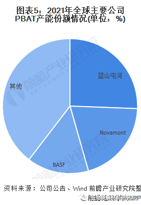 目前,PBAT生產(chǎn)工藝發展最早(zǎo)且最為成(chéng)熟的是德國巴斯夫,巴斯夫(BASF)的PBAT商品名為ecoflex;意大利Novamont公司(sī)是世界上最早進行生物(wù)降解塑料產(chǎn)業化的(de)企業,Novamont的PBAT商品名是Origo-Bi。全球PBAT產能排名前三的企業為中國的藍山屯河(PBAT產能12.8萬(wàn)噸/年)是意大利Novamont(PBAT產能10萬噸/年)和德國(guó)BASF(PBAT產能7.4萬噸/年)。